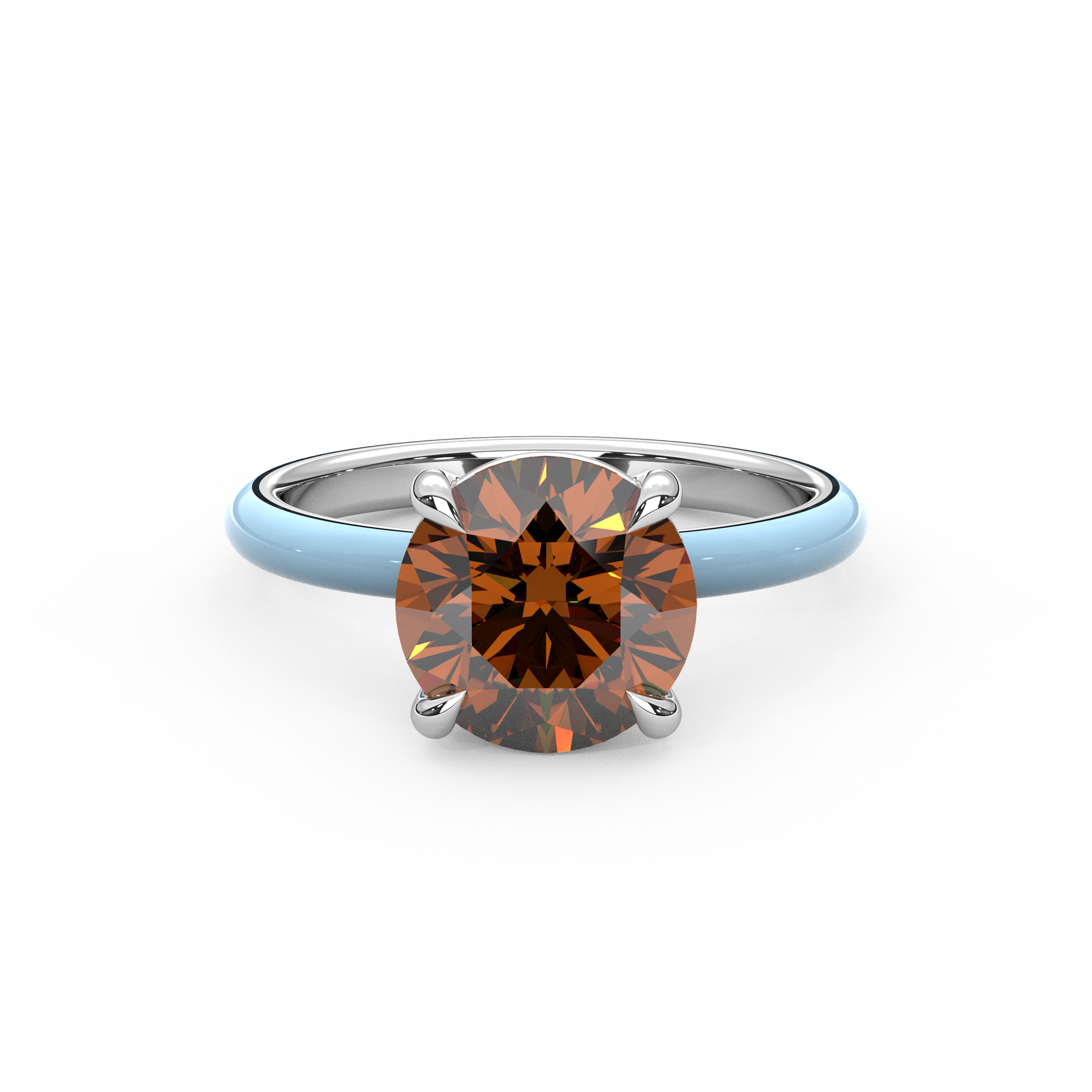 Introducing our take on a keepsake piece with a fun twist on classic pieces, made to your liking. Expertly crafted from 14K Yellow, Rose or White Gold, this stunning piece showcases a Champagne Round moissanite, with an enamel band in the color of your choice. It is the perfect way to add a pop of color to your stack or on its own!