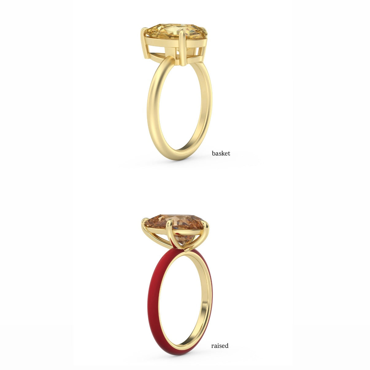 Introducing our modern take on a keepsake classic. Expertly crafted in 14K Yellow, Rose, or White Gold, this statement piece features a striking 4ct step-cut pear moissanite, paired with a custom enamel band in the color of your choice. Designed to stand alone or layer effortlessly, it brings a bold pop of color to any stack.