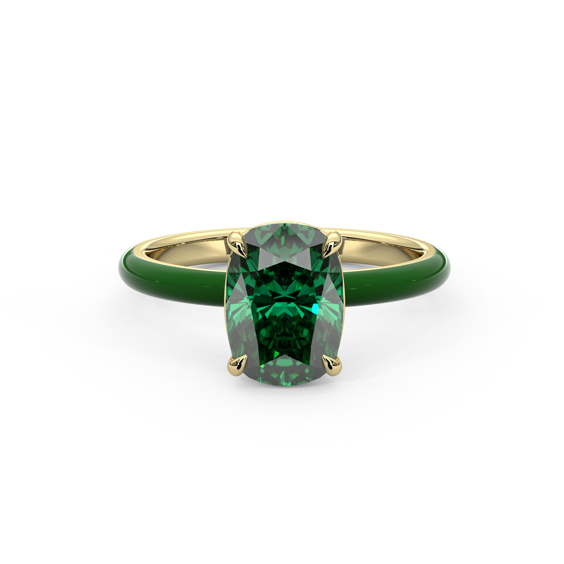 Introducing our take on a keepsake piece with a fun twist on classic pieces, made to your liking. Expertly crafted from 14K Yellow, Rose or White Gold, this stunning piece showcases a Emerald Green Elongated Cushion Lab Sapphire, with an enamel band in the color of your choice. It is the perfect way to add a pop of color to your stack or on its own!