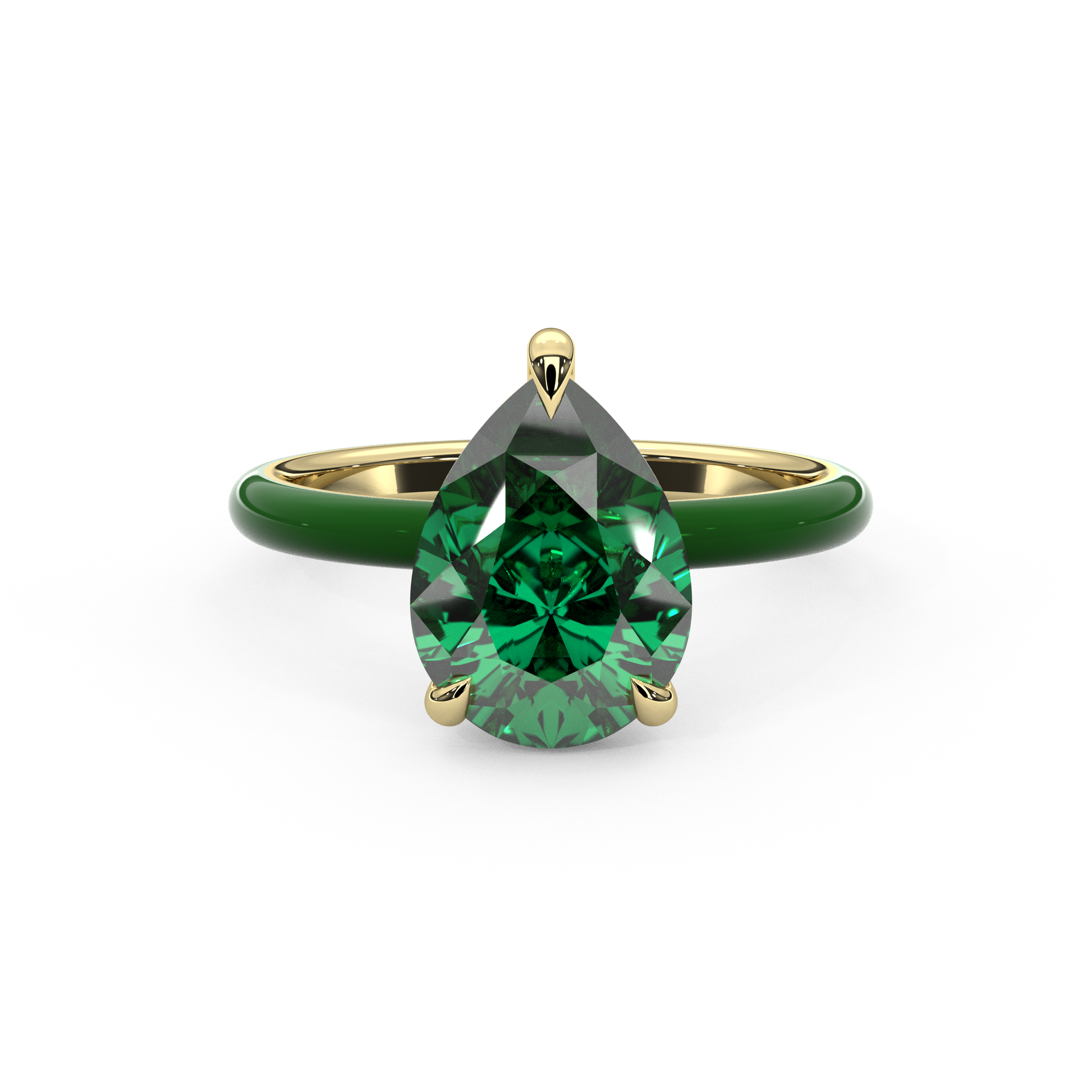 Introducing our take on a keepsake piece with a fun twist on classic pieces, made to your liking. Expertly crafted from 14K Yellow, Rose or White Gold, this stunning piece showcases a Emerald Green Pear Lab Sapphire, with an enamel band in the color of your choice. It is the perfect way to add a pop of color to your stack or on its own!