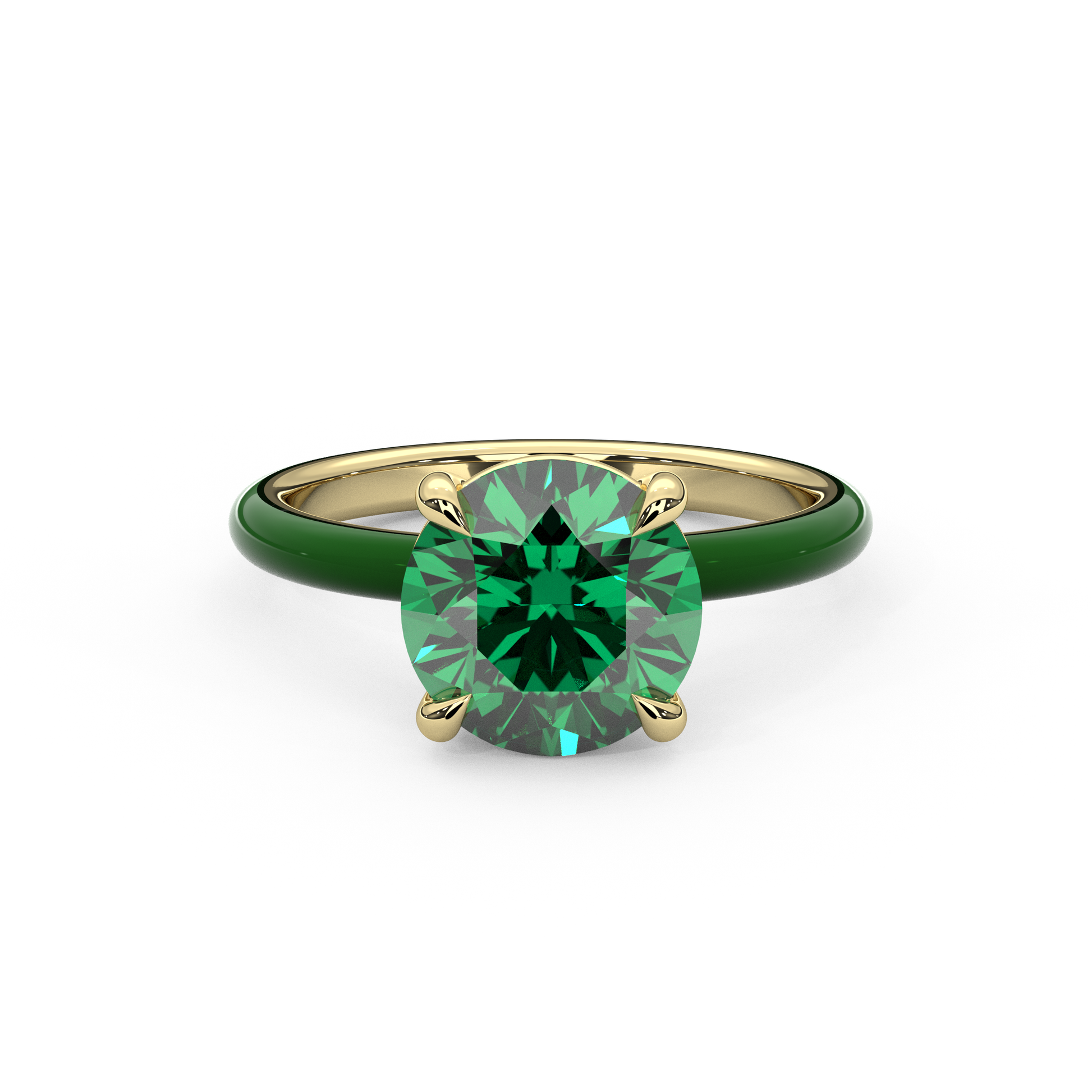 Introducing our take on a keepsake piece with a fun twist on classic pieces, made to your liking. Expertly crafted from 14K Yellow, Rose or White Gold, this stunning piece showcases a Emerald Green Round Lab Sapphire, with an enamel band in the color of your choice. It is the perfect way to add a pop of color to your stack or on its own!