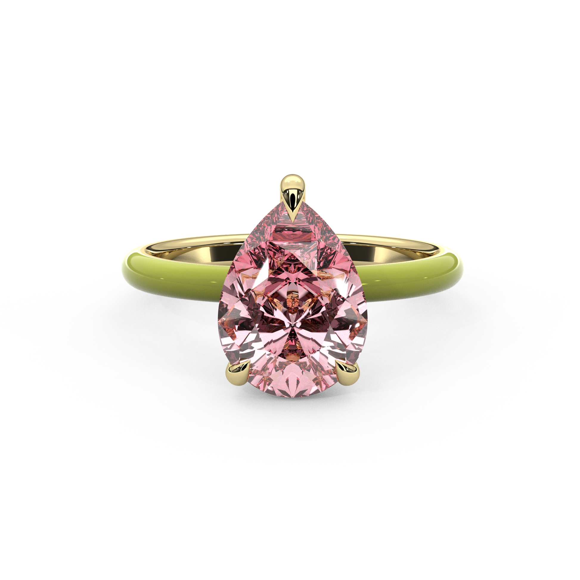 Introducing our take on a keepsake piece with a fun twist on classic pieces, made to your liking. Expertly crafted from 14K Yellow, Rose or White Gold, this stunning piece showcases a Light Pink Pear Lab Sapphire, with an enamel band in the color of your choice. It is the perfect way to add a pop of color to your stack or on its own!