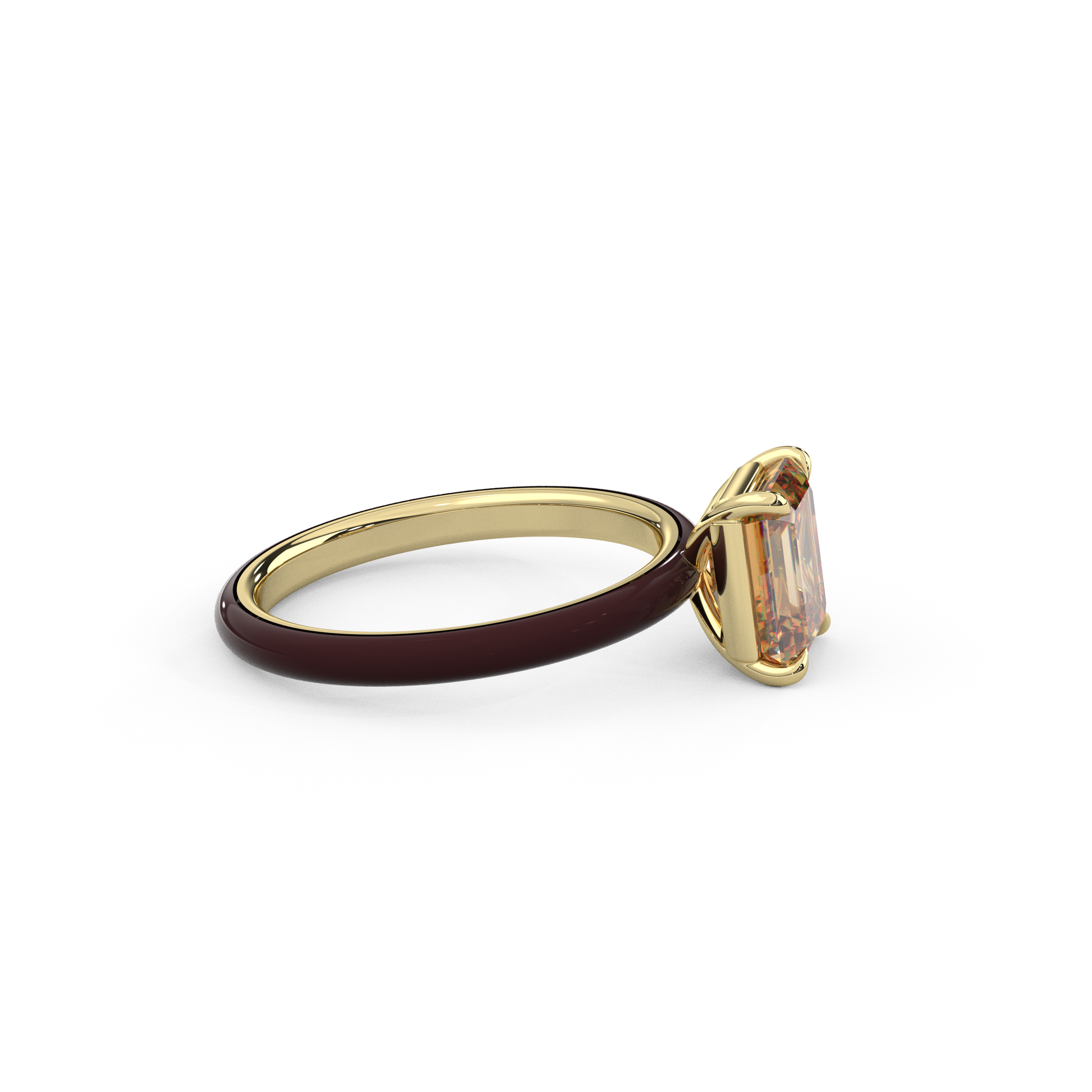 Introducing our take on a keepsake piece with a fun twist on classic pieces, made to your liking. Expertly crafted from 14K Yellow, Rose or White Gold, this stunning piece showcases a Champagne Emerald moissanite, with an enamel band in the color of your choice. It is the perfect way to add a pop of color to your stack or on its own!